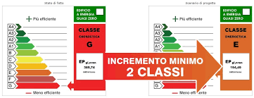 ●miglioramento di almeno 2 classi energetichedell’edificio (oppure il conseguimento della classe energetica più alta possibile), da dimostrare mediante APE ante e post intervento, con dichiarazione asseverata da tecnico abilitato;